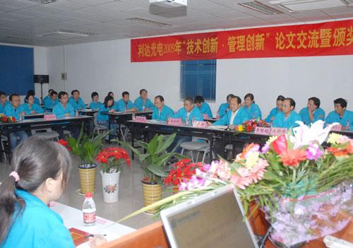 ??????? 深秋時(shí)節(jié),正當(dāng)公司廣大干群以百倍的努力,昂揚(yáng)的精神狀態(tài),投入到大干一百天,全力沖刺年度經(jīng)營(yíng)目標(biāo)的關(guān)鍵時(shí)刻,10月30日晚,利達(dá)光電舉辦了2009年“技術(shù)創(chuàng)新?管理創(chuàng)新”論文交流暨表彰大會(huì)。利達(dá)公司中高層管理人員,公司科技和技能帶頭人,各單位技術(shù)主管和骨干80余人濟(jì)濟(jì)一堂,相互切磋技藝,共享交流成果,以達(dá)到用科學(xué)發(fā)展的思路,提升利達(dá)技術(shù)?管理創(chuàng)新能力,培育創(chuàng)新文化,打造核心競(jìng)爭(zhēng)力,推動(dòng)公司產(chǎn)業(yè)升級(jí)進(jìn)而促進(jìn)年度經(jīng)營(yíng)目標(biāo)實(shí)現(xiàn)的目的。活動(dòng)由利達(dá)公司副總經(jīng)理李智超主持。集團(tuán)公司紀(jì)委副書(shū)記胡旭東應(yīng)邀參加了會(huì)議。