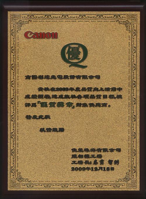 公司榮獲佳能供應商“優(yōu)質(zhì)獎章”