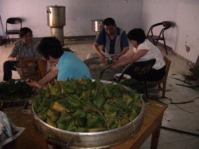 ??????? 我看到在房間窗下,還有一小堆洗好未煮的咸鴨蛋,淡綠色、粉白色看上去很新鮮,影影綽綽似乎看到里面的紅心兒。從準(zhǔn)備包粽子,精選材料,到這兩天的制作和蒸煮粽子,居委會(huì)盡心盡力,不辭辛苦;幾位包粽子的師傅一坐就是半天,幾分鐘才包好一個(gè)粽子;他們靈巧的雙手不閑著,一個(gè)接一個(gè)把葦葉和糯米、花生、蜜棗、鮮肉變成了可愛的粽子,看上去很神奇。為了讓那些家在外地的單身大學(xué)生員工吃上美味可口的粽子,他們不顧天熱,不辭勞苦,傾注了深情,把利達(dá)公司對(duì)單身大學(xué)生員工的關(guān)愛、信任、期望包進(jìn)了端午粽子中。
