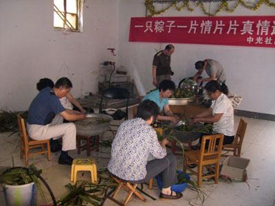 ??????? 近幾年,端午前,利達(dá)公司都會(huì)想到那些遠(yuǎn)離家鄉(xiāng)的單身大學(xué)生員工,并提前為他們準(zhǔn)備一份端午節(jié)慰問(wèn)品。這份慰問(wèn)品主要是粽子還有咸鴨蛋、雞蛋。粽子是哪里來(lái)的?利達(dá)公司委托中光社區(qū)居委會(huì)幫助制作的。