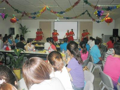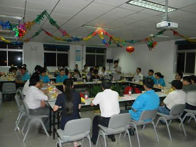??????? 聯(lián)誼會在熱烈、祥和的氣氛中開始。群體快板《利達發(fā)展新面貌》;合唱《套馬桿》;獨唱《笨小孩》、《火苗》;魔術(shù)表演;舞蹈《天竺少女》;游戲《擊鼓傳花》節(jié)目不時博得大家的陣陣掌聲,整個會場宛如一派歡樂的海洋。