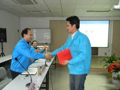??????? 3月5日下午,在公司召開的經(jīng)營活動業(yè)績反饋會上,李智超總經(jīng)理親自為投影事業(yè)本部頒發(fā)獎金。并要求投影事業(yè)本部在今后的工作中戒驕戒躁、繼續(xù)努力、再創(chuàng)佳績,再接再厲做好今年的各項工作。同時,要求全體干部員工向他們學習,學習他們不畏困難、齊心協(xié)力、立即執(zhí)行,按要求完成任務(wù)的精神,為全面完成公司年度目標與各項重點工作不懈努力。
