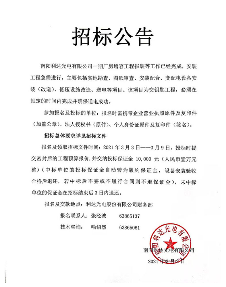 新廠區(qū)廠房電力擴容改造招標公告